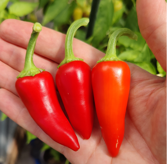 Plante: 70-80 cm med stort udbytte - aflange 6-8cm røde chilifrugter.