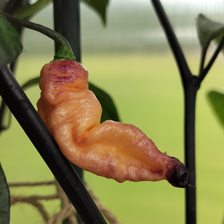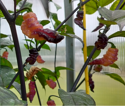 Thors Thunderbolt er opkaldt efter tordenguden Thor og skal give hints til den måde styrken opleves på i frugterne. Meget stærk. Det er tydeligt at se capsaicinolien i frugterne. Meget flot plante. Helt mørke stængler og mørke blade. Modner fra lilla til beige. Klar favorit her hos os.